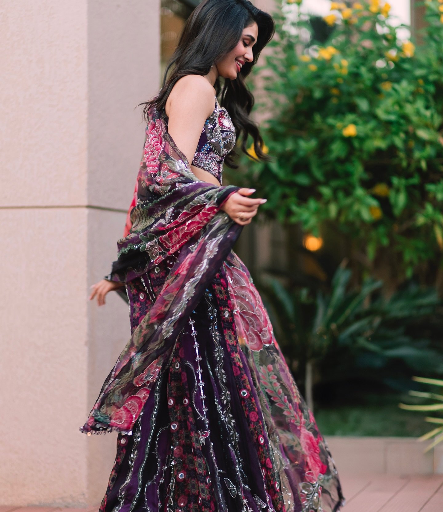 As the soft fabric swayed with every movement, it lent a regal yet contemporary appeal to her look, making her a true style icon for the occasion. The deep purple hue, symbolizing royalty and mystery, only enhanced the aura of her radiant presence, leaving her fans enchanted.