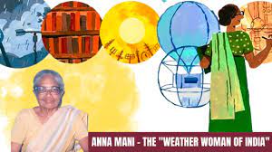 Who is Anna Mani?Anna Mani was born on 23 august 1918 in Peerumedu, Kerala. She did such work in the field of meteorology that physicists and meteorologists called her the weather woman of India. Due to the efforts of Anna Mani, it was possible to forecast the weather in India. Honouring her contribution, google made a special doodle on her 104th birthday.