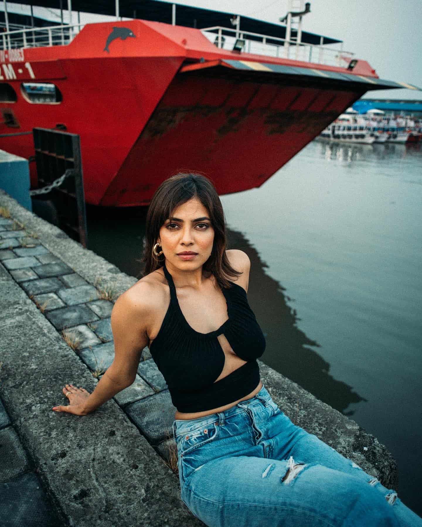 Malavika made sure that everyone who looked at these most recent photos saw the shape of her spicy curves by flashing her bosom in a revealing shirt. The actress posed in front of numerous docked ships and questioned whether her boots or the boat was drawing more attention: her boots or the dock? Certainly, titanic won't get any attention when the woman seated in front is radiating such sex appeal.