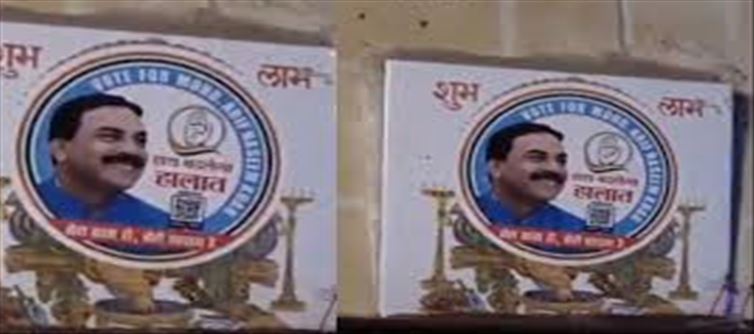 congress candidate Naseem Khan from Chandivali seat of Andheri East, mumbai has been embroiled in controversy. Naseem Khan's poster has been pasted on top of Lord Ganesha's picture in a house. His workers must have done this during the campaign, due to which the local people are angry. Its video has gone viral. bjp has also attacked congress citing the viral video. It can be seen in the video that Ganpati's photo and Shubh-Labh written on the tiles above the gate of the house. Naseem Khan's poster has been pasted on top of this photo. local people are angry after seeing the poster. In the video, people are talking in Marathi and are heard saying, "He is very shameless. He is a congress candidate. He has put a sticker on top of Ganpati's photo. Don't you feel ashamed? ''